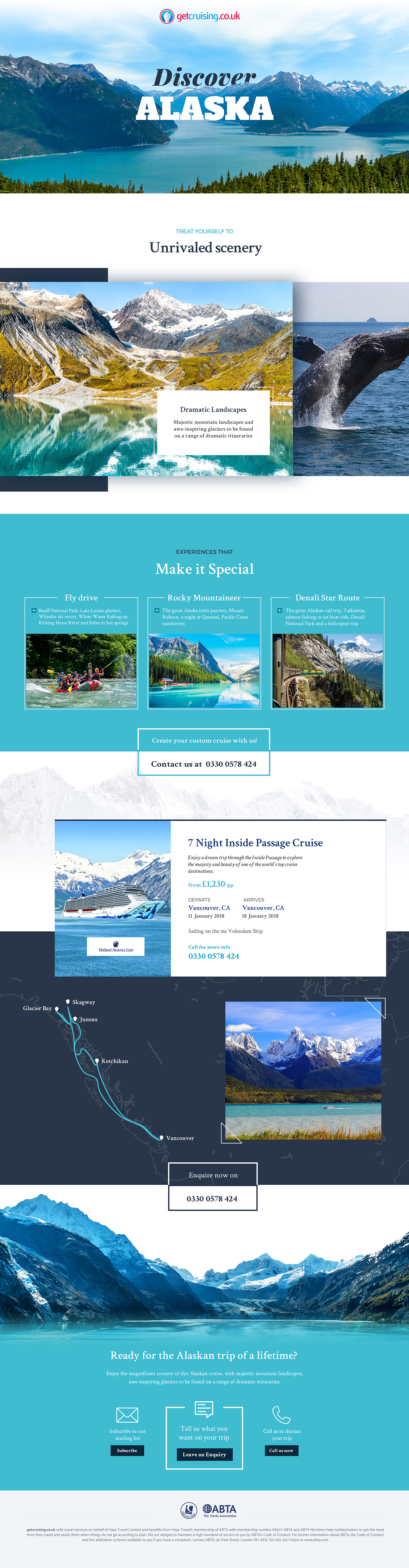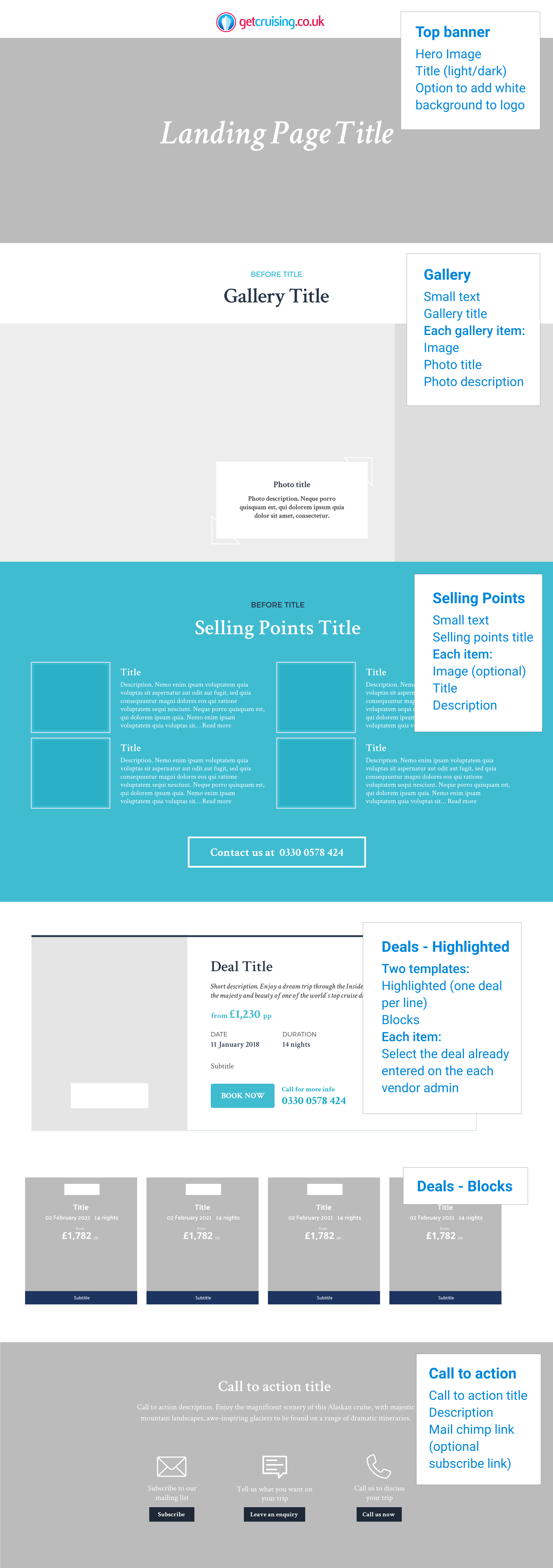 The strategy for the landing pages was to create a sense of wonder on luxury holiday users while creating a structure that could be easily adapted for other destinations and modified on the admin area by our agents. We decided the top image could be more bespoke to really sell the experience. I created the strategy alongside the marketing teams and it was used for ppc campaigns.