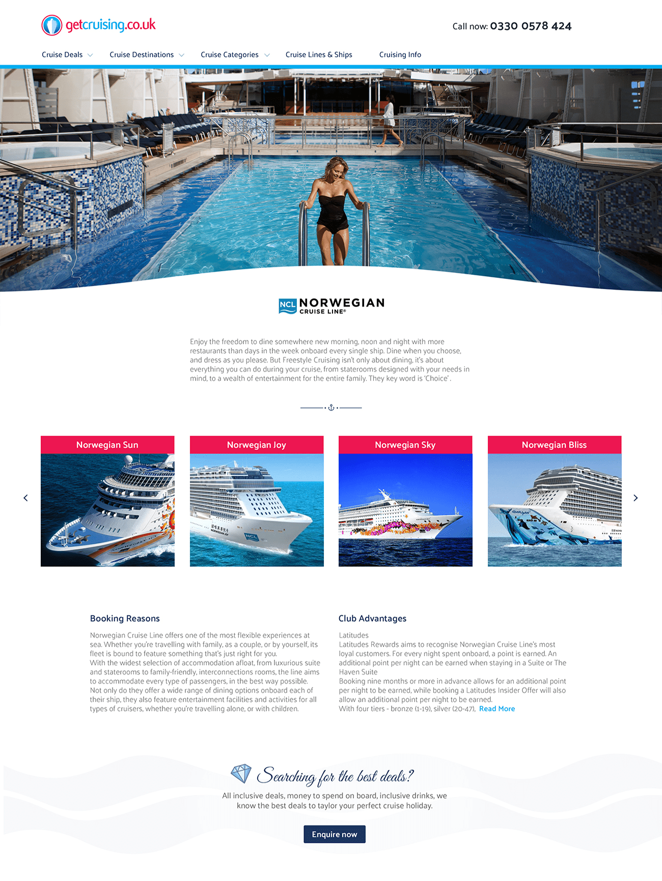 I redesigned the GetCruising website and introduced the new search system. GetCruising.co.uk is one of the many travel websites I worked on over the years. A clean and elegant redesign was needed to target fans of luxury cruising.