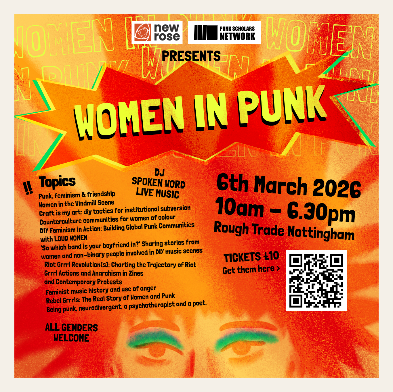 PUNK influences the the blocks of text that don’t align properly evoking the zine techniques of the 70s, using cutouts and xerox. WOMEN influenced the illustration of the organiser herself for the background of the poster. The colours and texture brings us to our modern days and the vibrancy of the event.