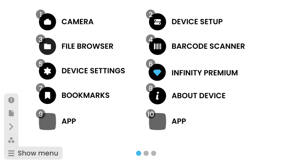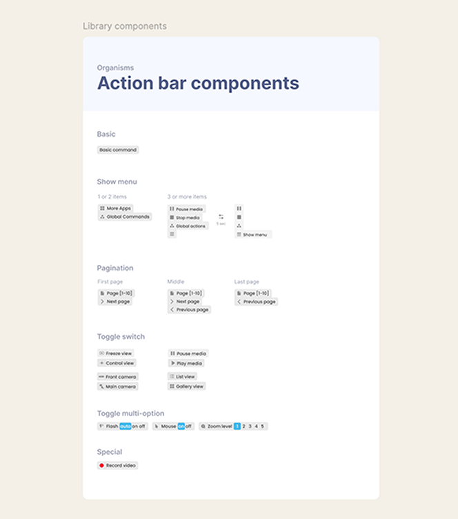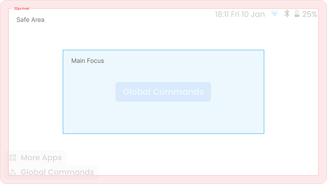 Navigation solutions had to be thought through considering the android system integration challenges and easy to use for users presented with this new experience. A shared menu was the way forward. It contained components; such as pagination, global commands and toggles; that could be used depending on the application. Easy to maintain from a development perspective and created a reliable experience across the device.
