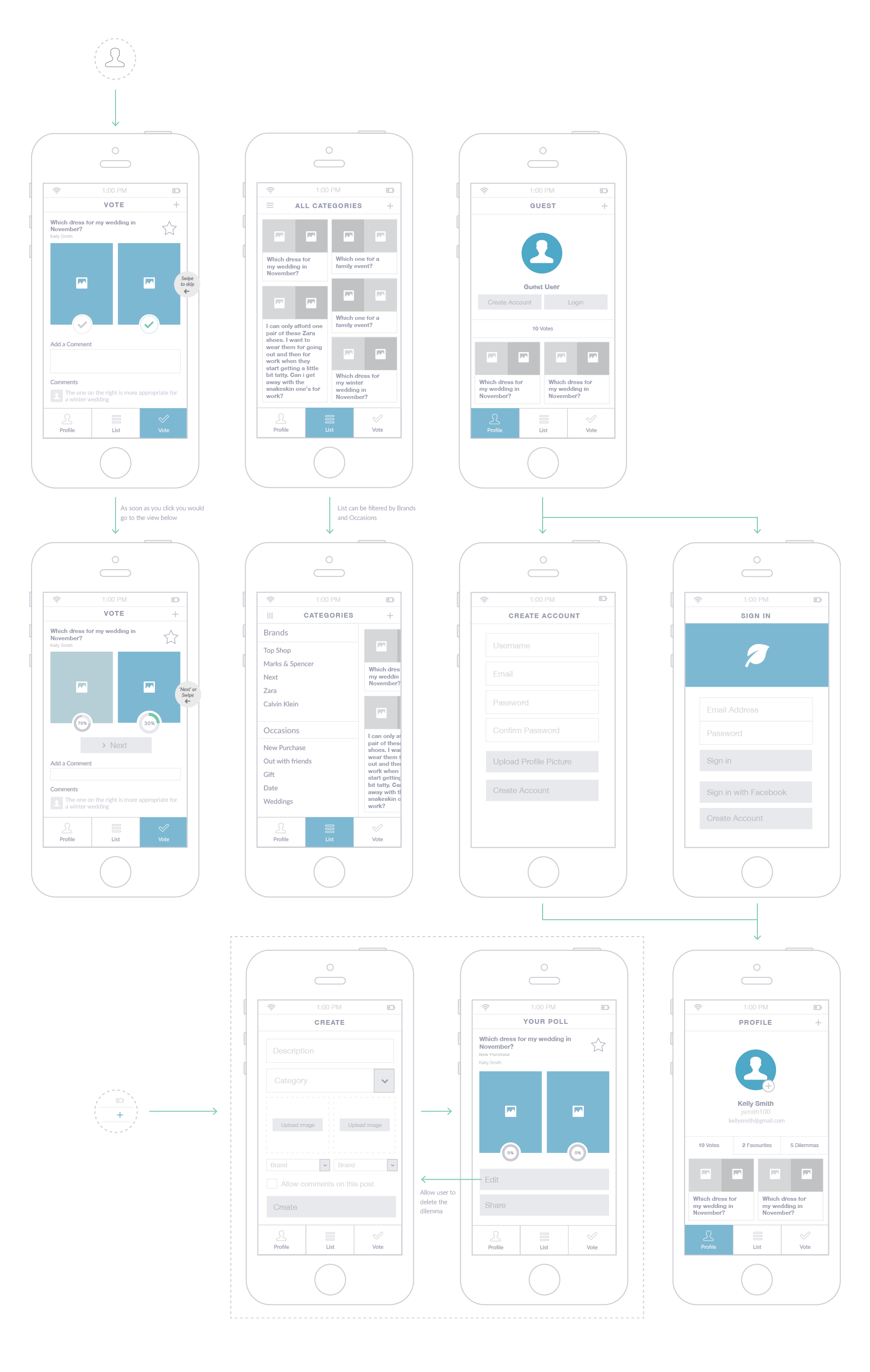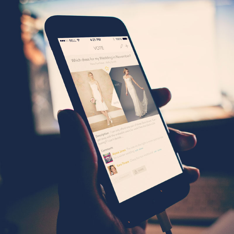 An app that allows users to post two different outfits and get feedback from others on which one to choose. With this fun and playful concept in mind, I created the entire flow and visual design for this iPhone app.